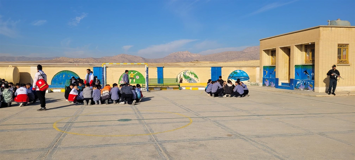 برگزاری مانور سراسری زلزله و ایمنی در مدرسه متوسطه اول پسرانه شهید فهمیده شهر توحید شهرستان هلیلان